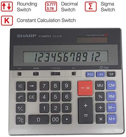 Sharp Qs 2130 12 Digit Commercial Desktop Calculator With Kickstand Arithmetic Logic Battery And Solar Hybrid Powered Lcd Display Great For Home And Office Use Gray And Black Office Products Amazon Com